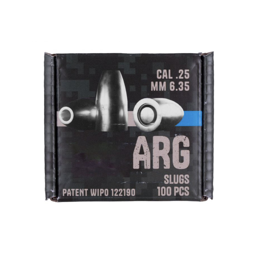 ARG 6.35mm hollow point slugs zijn precisie luchtbukskogels voor doelschieten. Met een gewicht van 38.6 grain en hoogwaardige holle punt constructie bieden ze uitstekende ballistische eigenschappen. De 100 grijze slugs zijn vervaardigd uit zacht lood voor consistente prestaties en optimale stabiliteit in de loop.